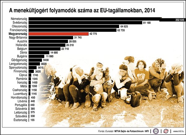 A menekültjogért folyamodók száma az EU-tagállamokban, 2014