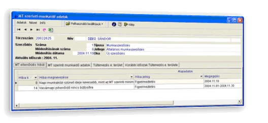 Képernyőkép: Munkaidő-kezelés esetében példa a Munka Törvénykönyve (továbbiakban: Mt.) szerinti ellenőrzésekre
