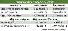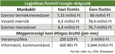 A Google szenior termékmenedzsere havi 7,3 millió forintot, vagyis évente kicsit több mint 88 milliót keres - írja a Glassdoor adatait idézve az Mfor.hu.