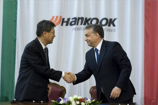 Orbán Viktor miniszterelnök megjegyezte, a Hankook gumiabroncsait olyan gépek állítják elő, amelyeket nem lehet egyik napról a másikra összepakolni és elvinni máshová. "Aki egyszer egy ilyen terméket gyártó gépsort valahol elhelyez - mondjuk, Rácalmáson, Dunaújváros szélén -, az hosszú ideig ott fog maradni, és amikor arról gondolkodik, hol fejlesszen, akkor ott fog fejleszteni, ahol az előző gépsora is van" - mondta a kormányfő, hangsúlyozva, hogy a Hankook magyarországi jelenléte hosszú távú.