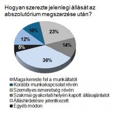 A Budapesti Gazdasági Főiskola felmérése szerint a 2008-ban, 2010-ben és 2012-ben végzett hallgatók 48 százaléka rendelkezett főállású munkaviszonnyal az abszolutórium megszerzésekor. Azon hallgatók, akik a záróvizsgát követően kezdték az álláskeresést, átlagosan 35 helyre adtak be pályázatot, 6 százalék egy hónapon belül, 35 százalék pedig legfeljebb 5 hónapon belül talált magának állást. Szakmájukban 82 százalék helyezkedett el, nagy többségük (84 százalék) állandó jellegű és határozatlan idejű munkaszerződéssel, 14 százalék pedig határozott idejűvel. A megkérdezettek fele végzése óta egyetlen munkahelyen dolgozik, 26 százalék egyszer már váltott állást. Ennél több helyen a válaszadók 19 százaléka dolgozott – írta a főiskola közleménye.
