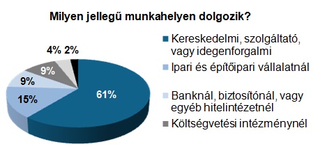 A megkérdezett öregdiákok 82 százaléka alkalmazottként végzi munkáját, 65 százalékuk beosztott diplomásként, 12 százalék alsó-, 9 százalék középvezetőként. Felsővezetőként a válaszadók 3 százaléka dolgozik.