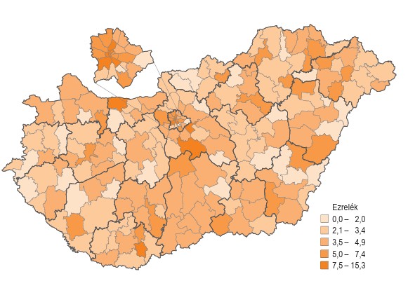 - Az ezer lakosra jutó vállalkozás a vármegyékben - grafikon 6 hónapja