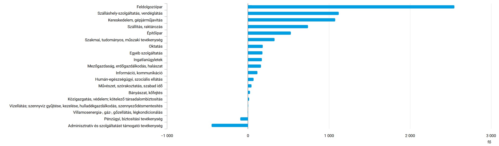 A külföldi dolgozók száma és változása nemzetgazdasági áganként - grafikon