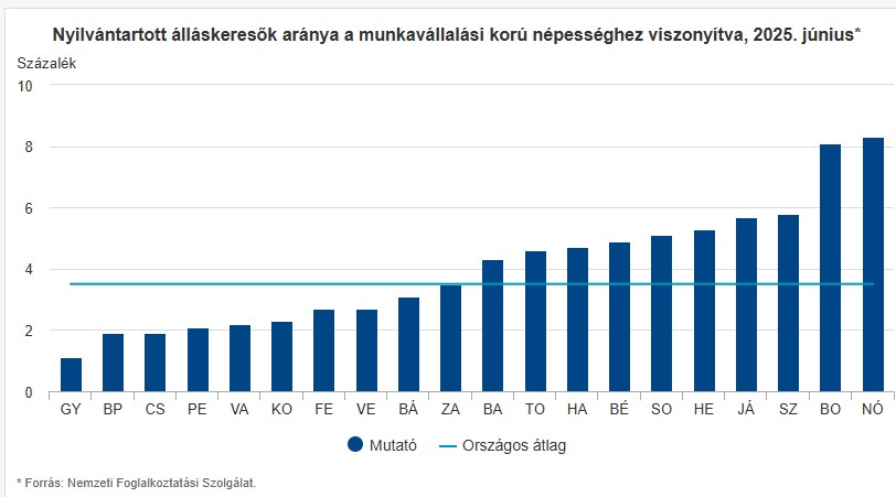 - Az álláskeresők száma a magyar vármegyékben - grafikon 2 hónapja
