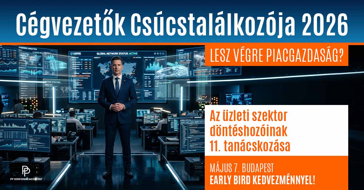 Jobb vagy rosszabb lesz az üzleti szektor helyzete a választások után? Lesz-e gazdaságpolitikai, szabályozási fordulat? Milyen kilátások vannak a növekedésre 2026-ban? A PP Konferenciaközpont „Cégvezetők Csúcstalálkozója 2026. Lesz végre piacgazdaság?” című, május 7-én megrendezendő hibrid konferenciáján a résztvevők megtudhatják, milyen irányú változásokra számíthatnak 2026-ban.