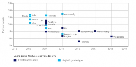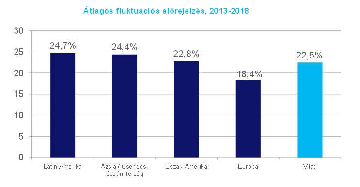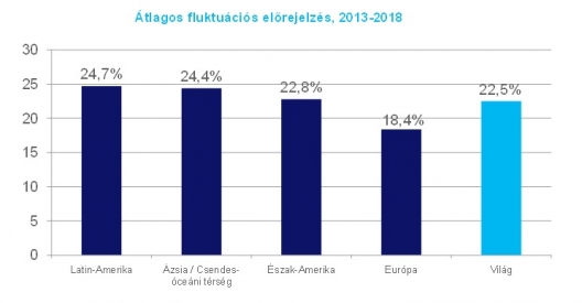 Az elmúlt évek adatait és az előrejelzéseket megtekintve jól látszik, hogy ahol magasabb gazdasági növekedés várható, ott a fluktuáció is nagyobb lesz. Az alábbi ábrán a globális fluktuáció előrejelzése látható.