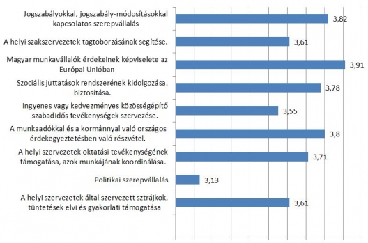 A felmérés többi kérdése már csak azokra a válaszadókra terjedt ki, akik legalább egy vezetőt vagy konföderációt ismertek. A körükben feltett kérdésre, miszerint mennyire tartják fontosnak a különböző konföderációs feladatokat egy 1-től 4-ig terjedő skálán, az adott válaszok szerint a feladatok mindegyike magas (3-as feletti) átlagot kapott. A felsorolt kilenc feladatkör közül a legalacsonyabb pontszámot a politikai szerepvállalás, a legmagasabbat a magyar munkavállalók érdekeinek képviselete az Európai Unióban érte el.