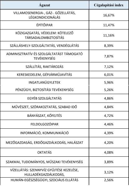 Az építőipar már közel egy éve növekedő cégalapítási számokat produkál, de ez eddig kevés volt az össz ágazati cégalapítási kedv átbillentéséhez. Az építőiparhoz azonban felzárkózott az energetika, a közigazgatás, a vendéglátás és a logisztika, így ezen ágazatokkal összességében már általános cégalapítási hullámról is beszélhetünk.