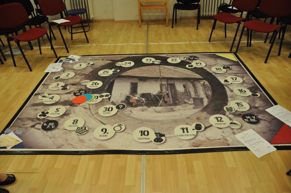 A teremben négy csoportba rendezve állnak a székek, a piros, a sárga, a kék, és a zöld mezőben lehet helyet foglalni. A székcsoportok családokat jelképeznek. Ezek a családok szegénységben élnek egy borsodi kistelepülésen és két gyereket nevelnek. A székeken papírlapok, a havi bevételeket, és kiadásokat tartalmazzák. Az egyik oldalon a gyes, a családi pótlék 2 gyerek utáni összege és a szociális segély, illetve a különböző döntések eredményeképpen realizálható jövedelmek szerepeltek. Lehet közmunkát vállalni, de csak egy családot választ ki a polgármester. Lehet feketén, vagy „lepapírozva” alkalmi munkát vállalni. Rendszeres, legális munkajövedelemről nincs szó, mivel a 3H-s településeken nincs olyan foglalkoztató, aki az iskolázatlan, zömében roma, tartós munkanélkülieknek érdemi fizetéssel ellentételezett munkát adhatna. Miskolc mellett, a Hernád-völgyébe visz minket a profi színészek által játszott kerettörténet.