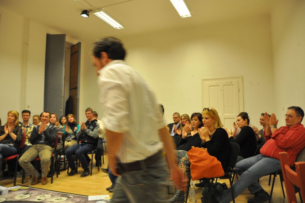 A színészeknek és Bass Lászlónak hála, remekül szórakoztunk. Közös döntéseket hoztunk, kézfeltartással szavaztunk, a csoporttársak vicces közbeszólásai is okot adtak a nevetésre. De a rossz érzés több ok miatt megjelent. A megalázottság, a kiszolgáltatottság döbbenetesen átérezhetővé vált. Ezzel az érzéssel együtt már nehéz felhőtlenül szórakozni.
