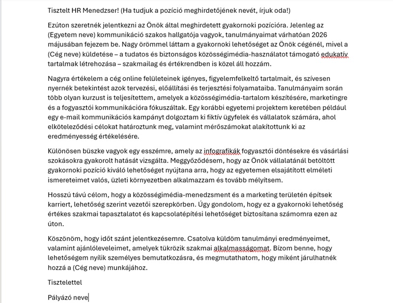Alább találja motivációs levél mintánkat gyakornoki pozícióra.