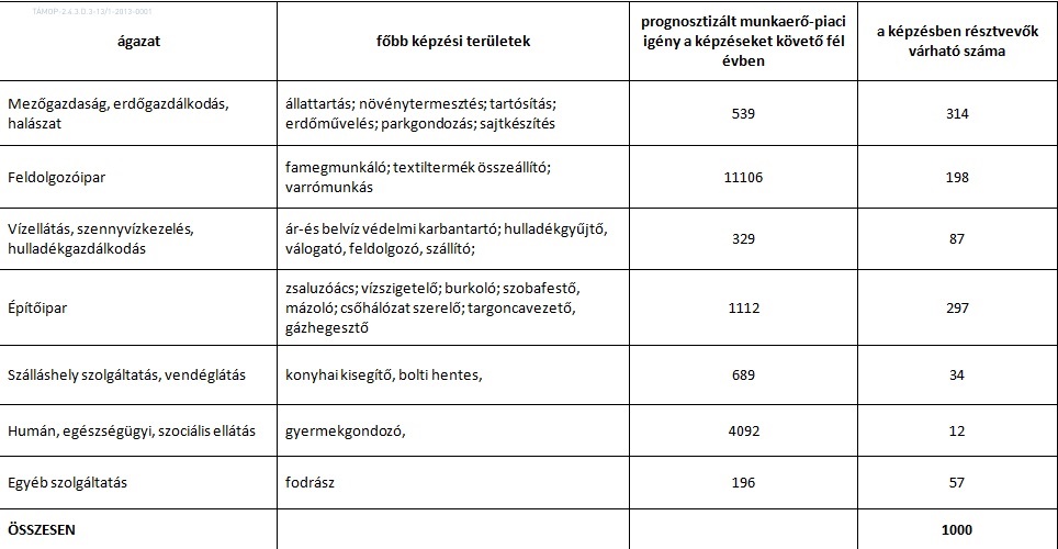 A minisztérium – mint konzorciumi tag – által közzétett felhívásra 106 ajánlat érkezett 64 féle képzésre. A tervek szerint június első felében indulhatnak azok az 1000 fő részvételével zajló szakmai képzések, amelyek célja, hogy javítsák a résztvevők elhelyezkedési esélyeit akár a foglalkoztatási szövetkezet keretein belül, akár a nyílt munkaerőpiacon.